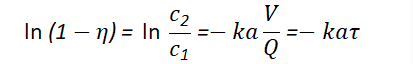 式中, C1、C2為尾氣中NO2進塔、出塔濃度,kmol/m3;;η為吸收效率;k為傳質系數(shù),kmol/m3;Q為處理氣量,m3/s;V為自由空間容積,m3;a為填料比表面積,m2/m3τ為接觸時間,s。
