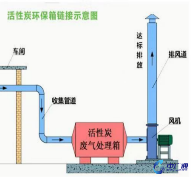 本設(shè)計擬采用活性炭吸附一體化凈化設(shè)備,主要包括:干式過濾+吸附裝置,廢氣在風機作用下,通過管道系統(tǒng)干式預(yù)過濾裝置至最近的活性炭吸附床,經(jīng)過活性炭吸附處理干凈達標排放。